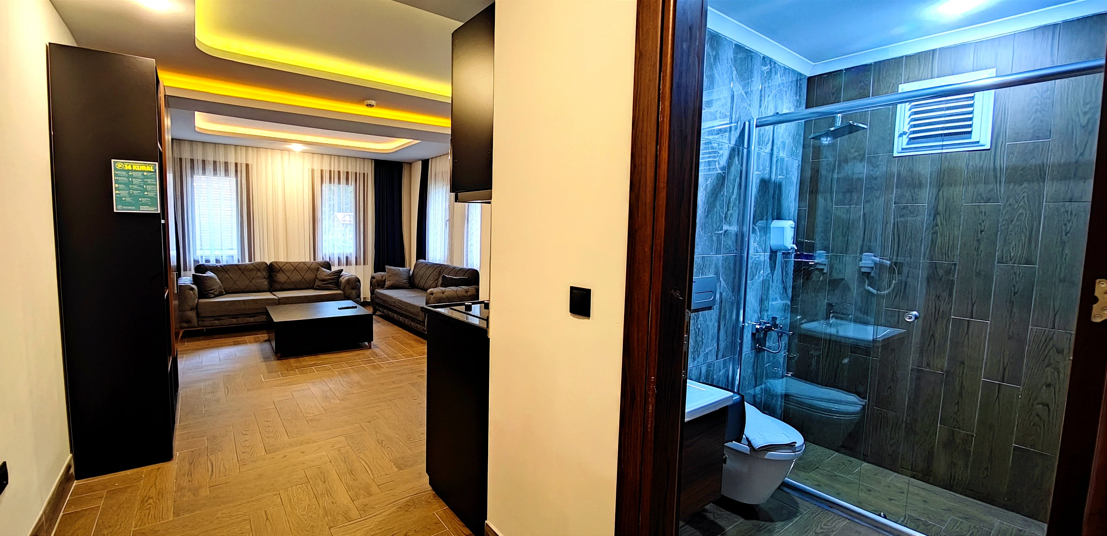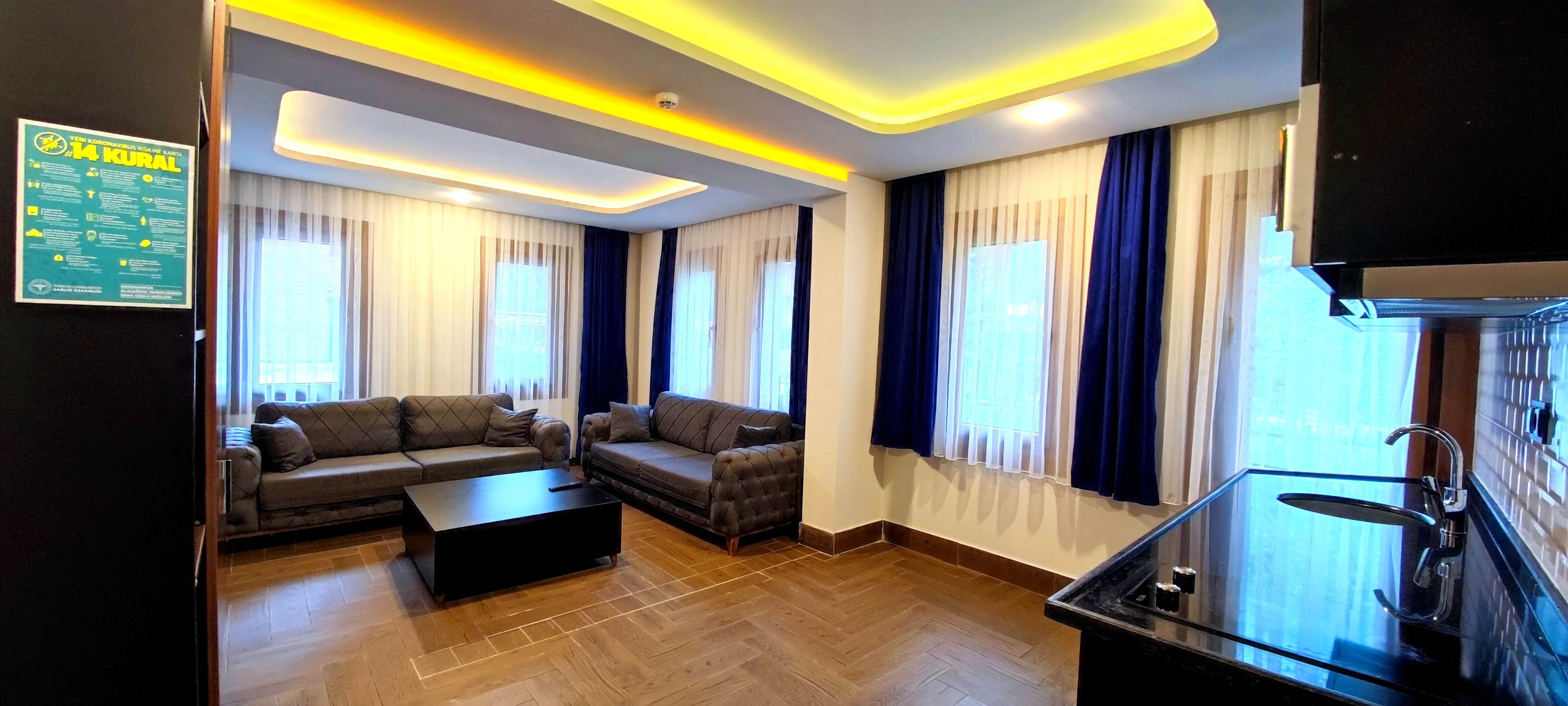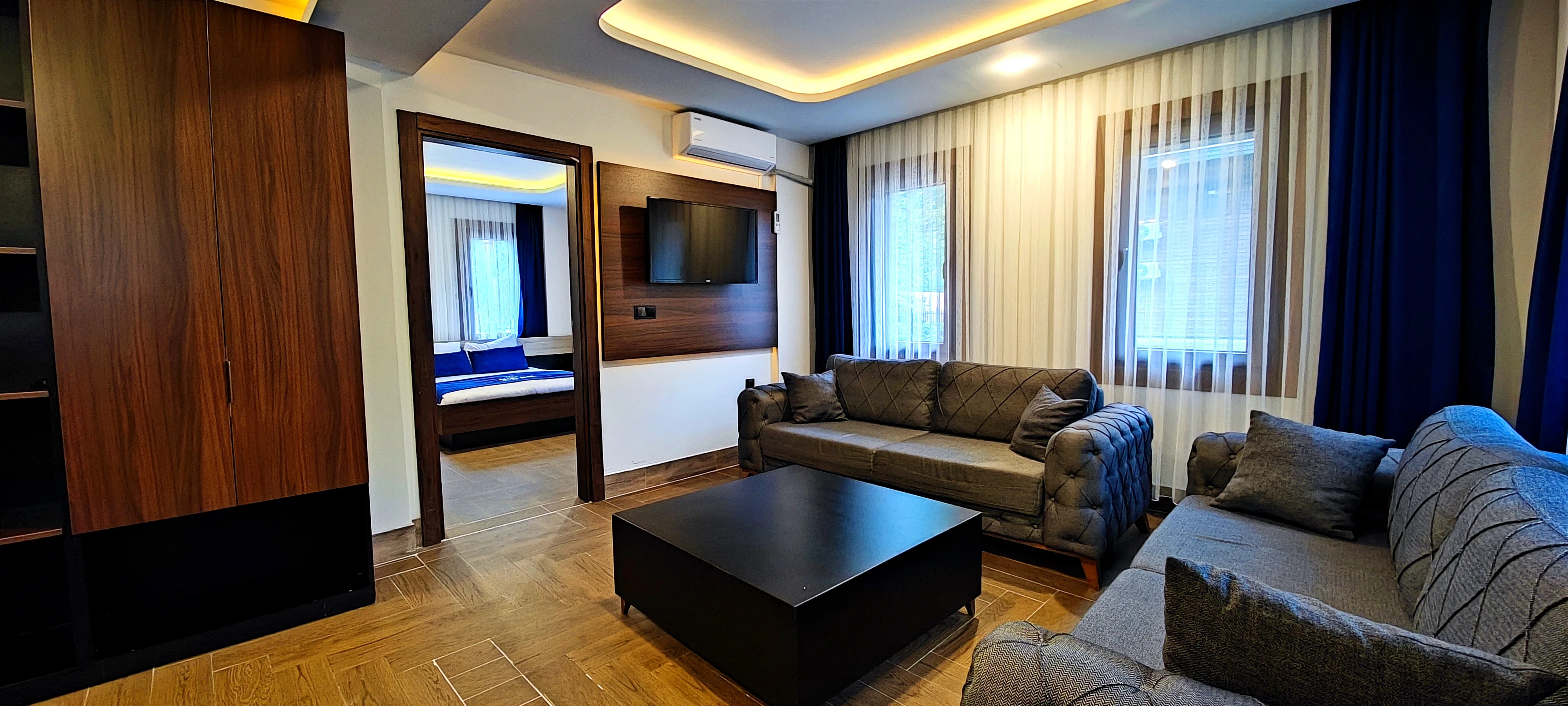 Ekonomi 1+1 Dört Kişilik odamız, aileler için konforlu ve kullanışlı bir konaklama alanı sunar. Ferah yapısı ile keyifli ve rahat bir tatil imkanı sağlar.